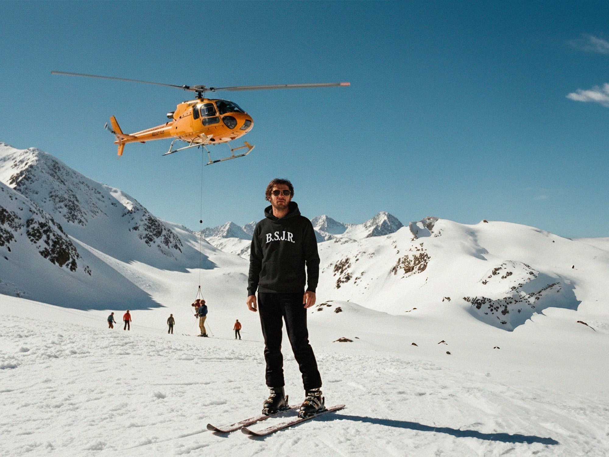 Lumière dorée sur la poudreuse, lunettes oversize. Beauséjour revisite cet imaginaire rétro avec une modernité sincère.