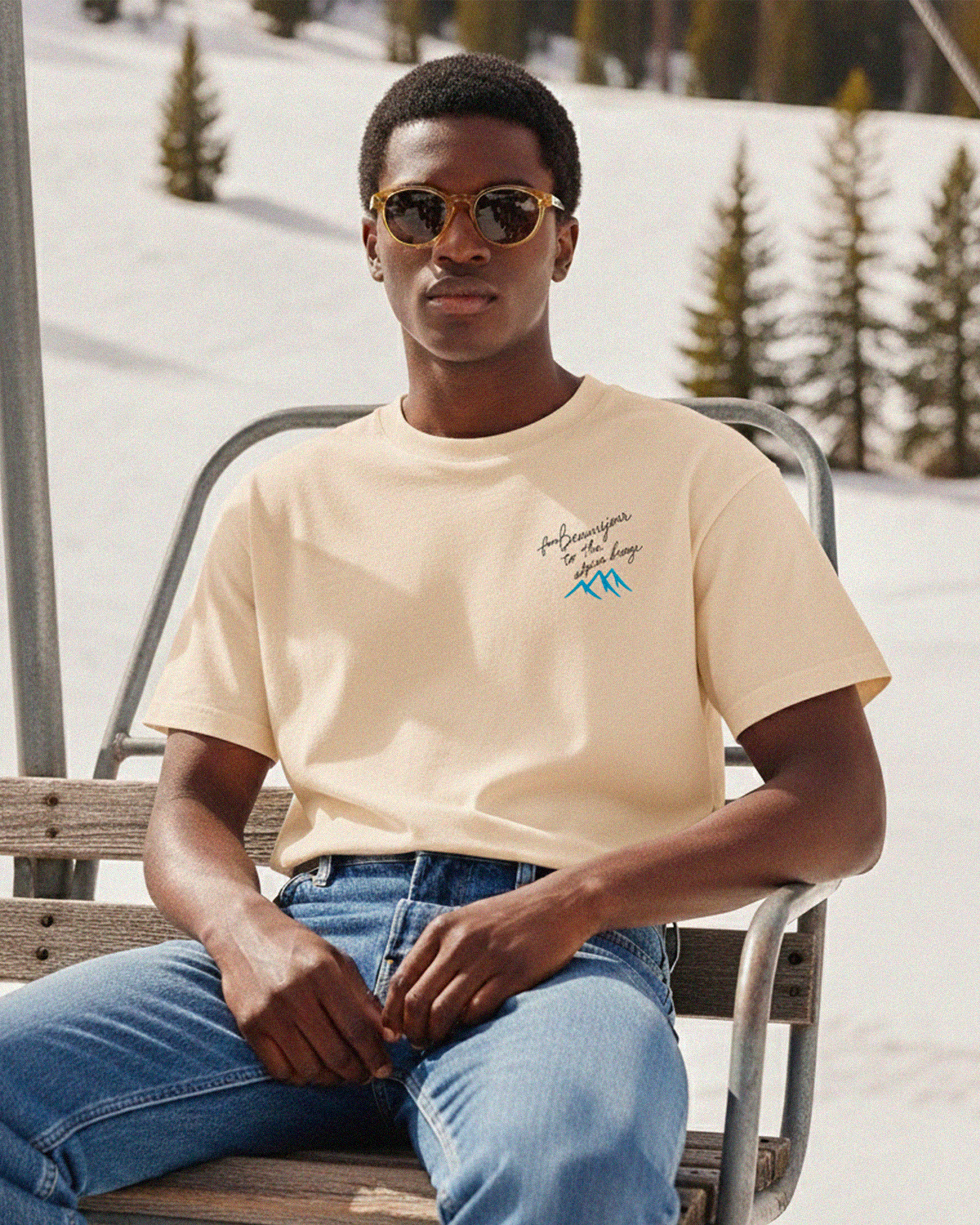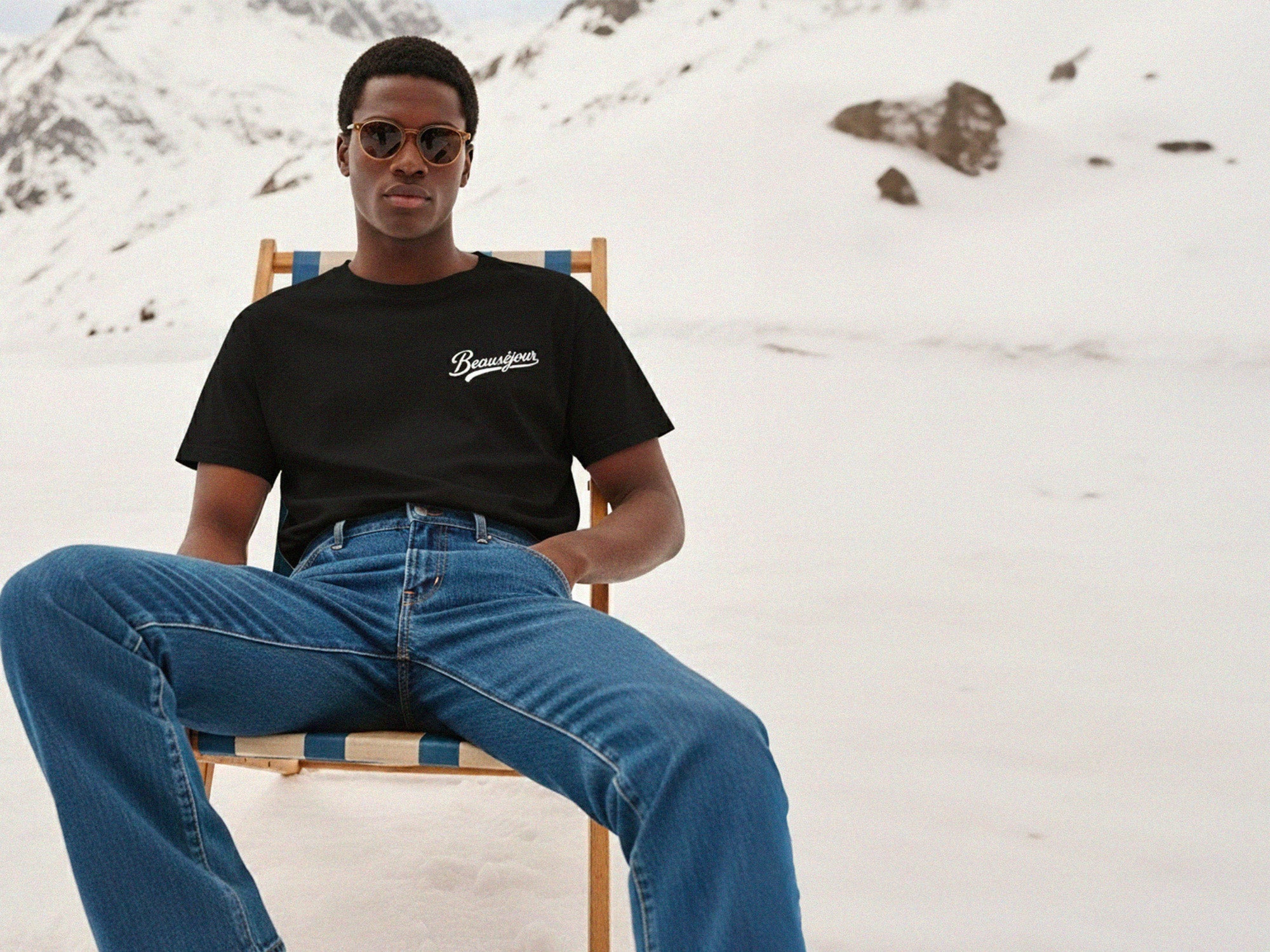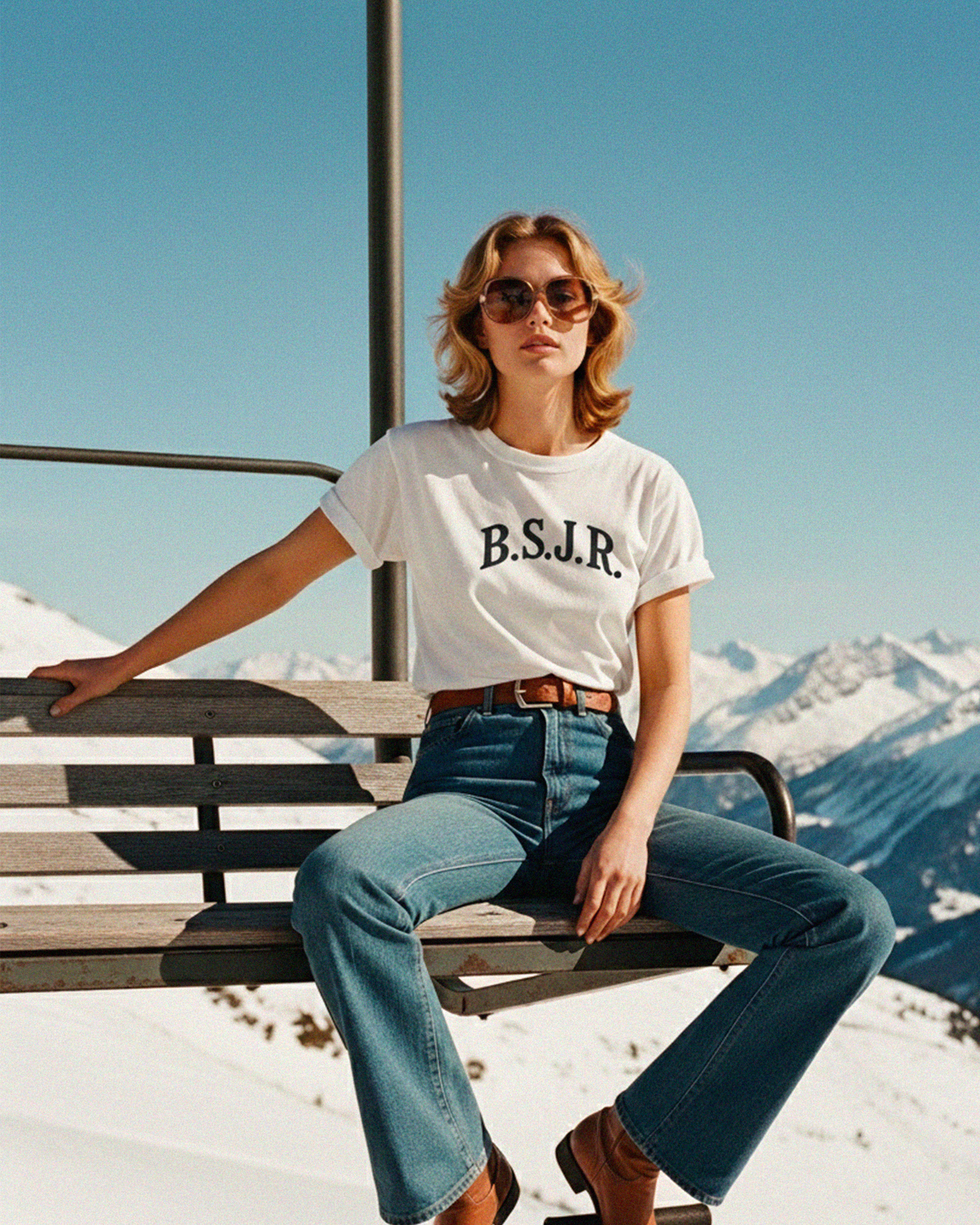 Lumière dorée sur la poudreuse, lunettes oversize. Beauséjour revisite cet imaginaire rétro avec une modernité sincère.