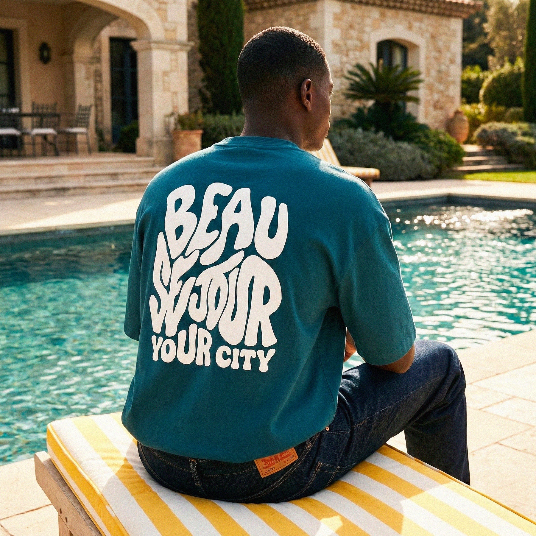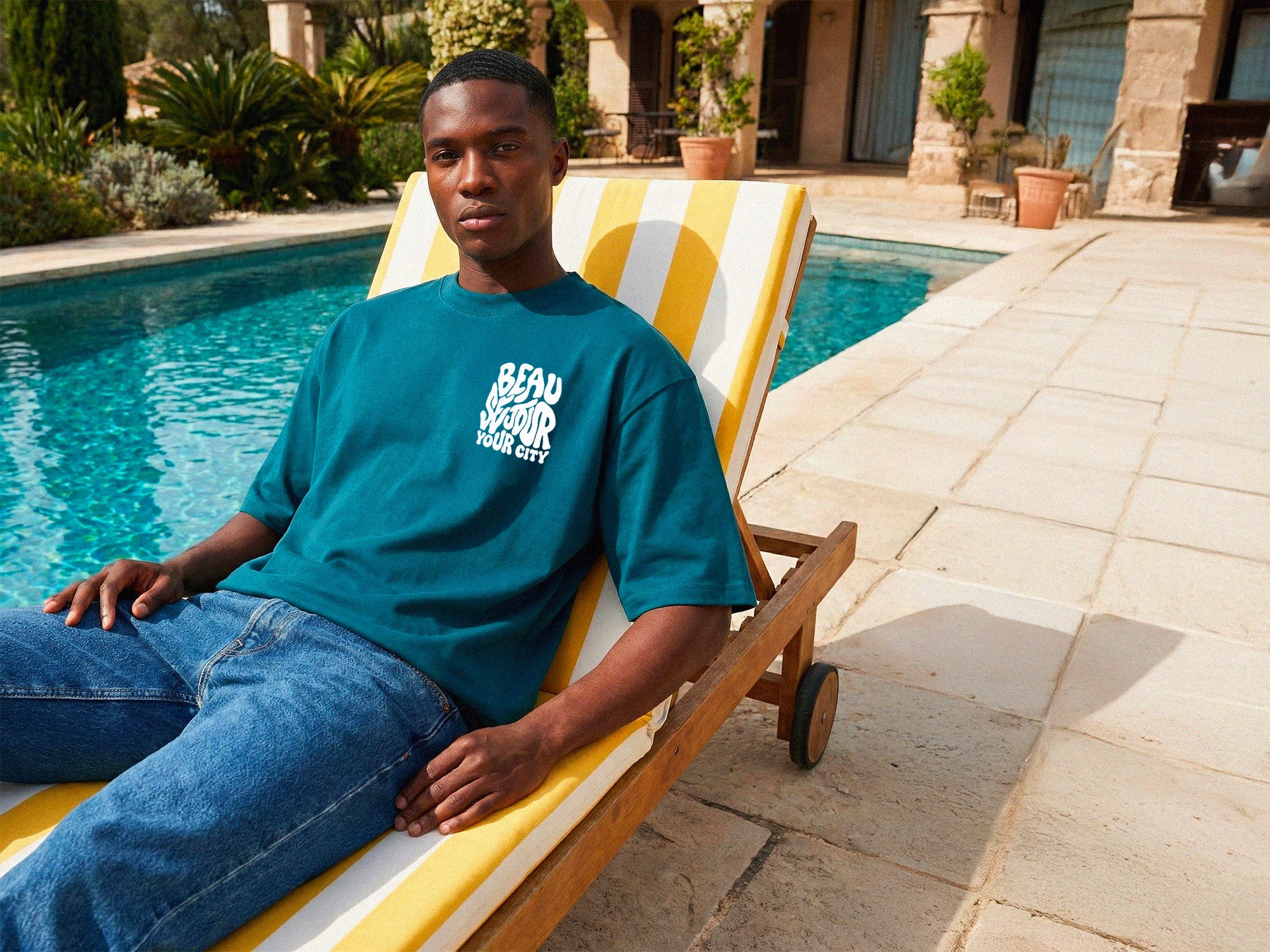 La coupe, la matière et la couleur textile sont fixes. Le T-Shirt boxy 280GSM Beauséjour, identique à nos collections.
