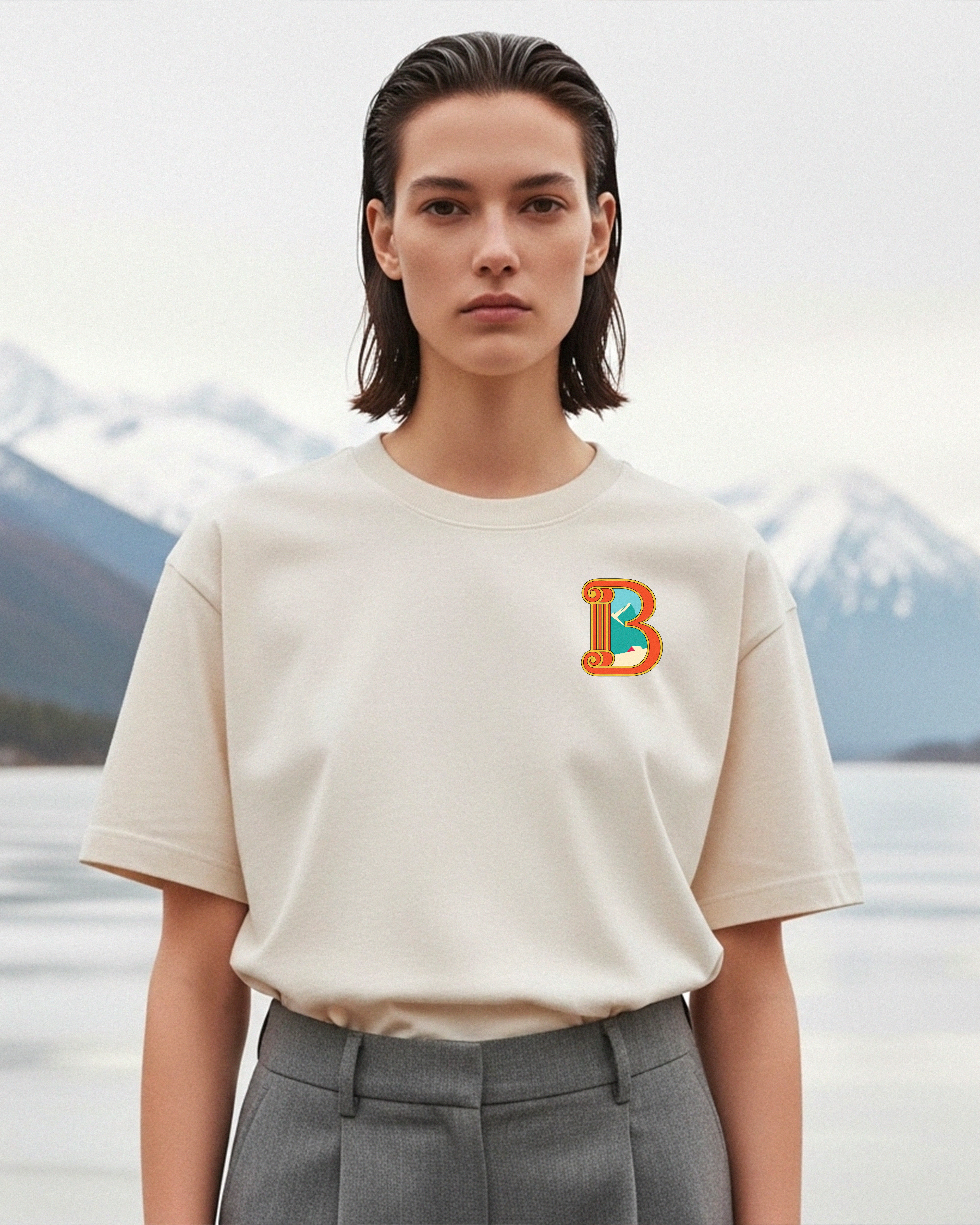 Un “B stylisé” dans lequel se dessine la ligne des montagnes. Symbole du lien entre l’homme, la nature et le souvenir.